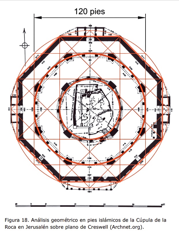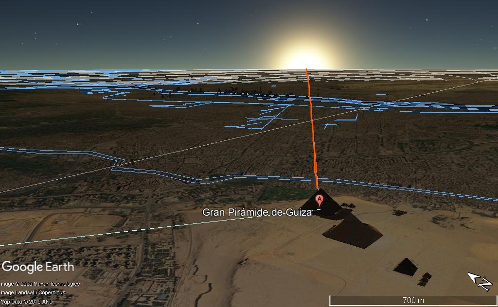 También las dimensiones de la Gran Pirámide, en codos reales, proporcionan expresiones matemáticas “a grandes rasgos”: como el número π, cuya mitad (π/2) se ve reflejada en la división de la altura entre la base, 440 / 280 = 11/7 (1,57142857…). Recordemos que en la antigüedad el número pi se representaba como 22/7. Se cree que puede representar la mitad de pi a una semicircunferencia, y esa mitad del círculo al Sol del amanecer y al del ocaso. Ahí entraría el juego de la salida y la puesta de Sol durante los solsticios con el Templo de la Roca de Jerusalén. Hay muchas más cifras referenciales al planeta y sus distancias con el sistema solar, pero lo dicho, a grandes rasgos. Creo que tiene mayor relevancia el hecho de que fueran a ese lugar a obtener esas medidas coincidiendo en el tiempo con la recopilación y “comprobación” de la Comisión Científica Internacional del “metro de todos y para todos”. Es importante comprender este punto.