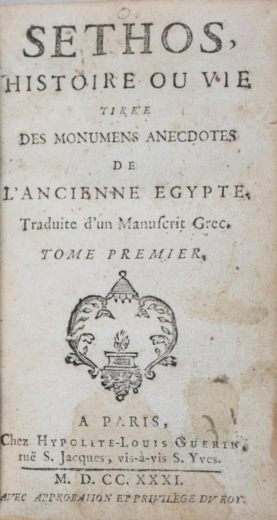 -«Sethos: Historie on vie tireé des monumens anécdotas de l’ancienne Egypte, traduit d’un manuscrit grec»: Jean Terrason. 1731