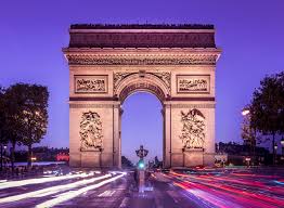 La línea sigue su recorrido por la avenida de “Los Campos Elíseos” cruzando el Gran Arco del Triunfo de la Plaza de la ESTRELLA (ahora de Gaulle), donde convergen hasta 12 calles y avenidas, ideadas por el barón Haussmann, para la organización del nuevo París del siglo XIX. Ordenada su construcción por Napoleón, no se inauguró hasta 1836. Sus 50 metros de altura y 45 de ancho dan cabida tanto a la tumba al soldado desconocido, como a diversos pasajes de la historia de Francia en sus relieves. El obelisco de la Concordia y este arco se inauguraron en 1836 con una diferencia de 88 días y una distancia de unos 2,2 kilómetros. Muy redondito (29/7 al 25/10).
