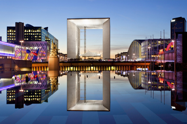 A partir de aquí, comienza la avenida Charles de Gaulle hasta cruzar el Sena por el puente de Neuilly y llegar al centro financiero de París. Dejando multitud de rascacielos a los lados para llegar al enorme cubo de 111 metros de altura que es el Gran Arco de la Defénse, donde finaliza la línea Ley del Eje histórico de París. Este es un cubo dentro de otro cubo, un teseracto, o hipercubo de cuatro dimensiones. El matemático de la Universidad de Oxford Marcus du Sautoy explica su impresión del gigantesco cubo: