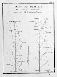 Veamos que les deparó el destino durante esa época de la expedición de Bonaparte a Oriente a los dos geógrafos que estaban acabando de recopilar los últimos datos de su medición-ritual del meridiano. Un hijo de Méchain, un joven científico llamado Isaac, parte de Toulon, siendo parte de la comitiva de sabios a las órdenes de Monge y Berthollet (todo queda en casa). Por esas fechas, Méchain, anda desquiciado y sus últimas triangulaciones se ralentizan más de lo debido (llevaba más de seis años sin ver a su mujer). Delambre acaba su medición el 17 de septiembre de 1798. Méchain escribe a este que no piensa reunirse con comisión alguna hasta la primavera, tiene “la imperiosa necesidad de algunos meses de retiro solitario y oscuro”. Normal, tanto triángulo y ritual para arriba y para abajo durante seis años…