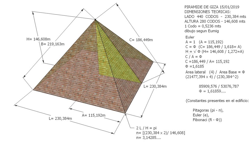 Mientras, en Egipto, los sabios franceses habían realizado las primeras mediciones científicas de la Gran Pirámide. Las medidas de la Cámara del Rey eran de 20 codos reales de largo (10.472 metros), equivalente a la milésima parte de la medida del iteru, utilizada por los egipcios para las largas distancias. 10 codos reales de ancho, para definir el codo real egipcio, de 0,5236 metros. La medida de 230,363 metros de media de base de la pirámide refleja 440 codos reales de largo, que fue utilizada por el granujilla de Al-Mamún como base de sus medidas de longitud. 280 codos reales se establecieron para su altura, calculando el piramidión que faltaba. La cifra de 440 codos reales de medida de base “expresada” en metros desde esta pirámide al templo de La roca, en Jerusalén, sería de 440.000 metros. Si dividimos por la cifra luciferina ‘666’ nos resulta una curiosa 660,660660660… La apotema (segmento trazado desde el vértice al centro de cualquier lado del polígono que conforma la base y que coincide con la altura de cada cara triangular de la pirámide regular) es de unos 185 metros, la décima parte de la milla náutica  (1851.85185185…metros) o el estadio romano y que aproximadamente se acerca muchísimo a la décima parte del minuto de arco terrestre… curioso este metro. ¡Ni que hubiera sido creado! Parece encajar proporcionalmente con todas estas medidas antiguas o todas las medidas están relacionadas con la naturaleza y, a través de este “metro para todos” con el ‘666’. Recordemos quienes utilizaron las medidas y guardaban sus patrones con gran celo y quienes las convirtieron en medida universal, escondiendo sus distancias “mágicas” y alineamientos entre lugares sagrados y demás edificaciones.