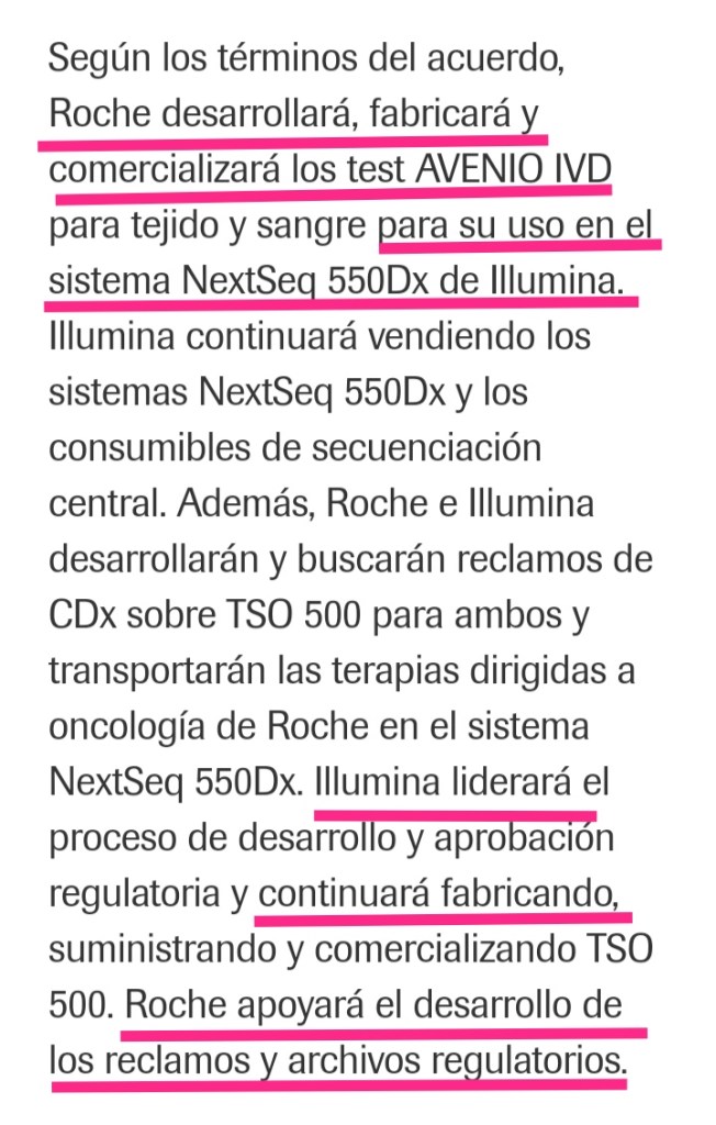 En esta noticia tenemos la unión de la empresa»reina» de los laboratorios (Roche) con Illumina, la fabricante de secuenciadores de nueva generación (NGS) para dominar el sistema de diagnóstico y tratamiento «personalizado» de los pacientes en esta terrible patología.