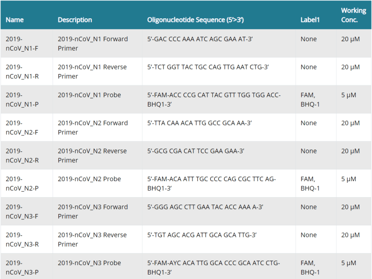 Research Use Only 2019-Novel Coronavirus (2019-nCoV) Real-time RT-PCR Primer and Probe Information