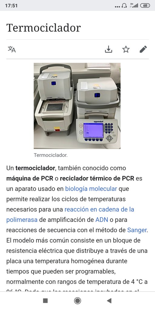 Esta sería la explicación científica…no se si os habéis dado cuenta de que al romper la cadena de ADN y volver a recomponerla con la enzima Polimerasa creamos el doble de cadenas de ADN que teníamos…o sea entramos en una progresión geométrica. La máquina de hacer ADN de la que hablaba el creador de la técnica Kary Mullis.