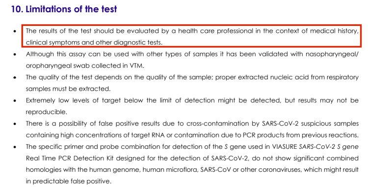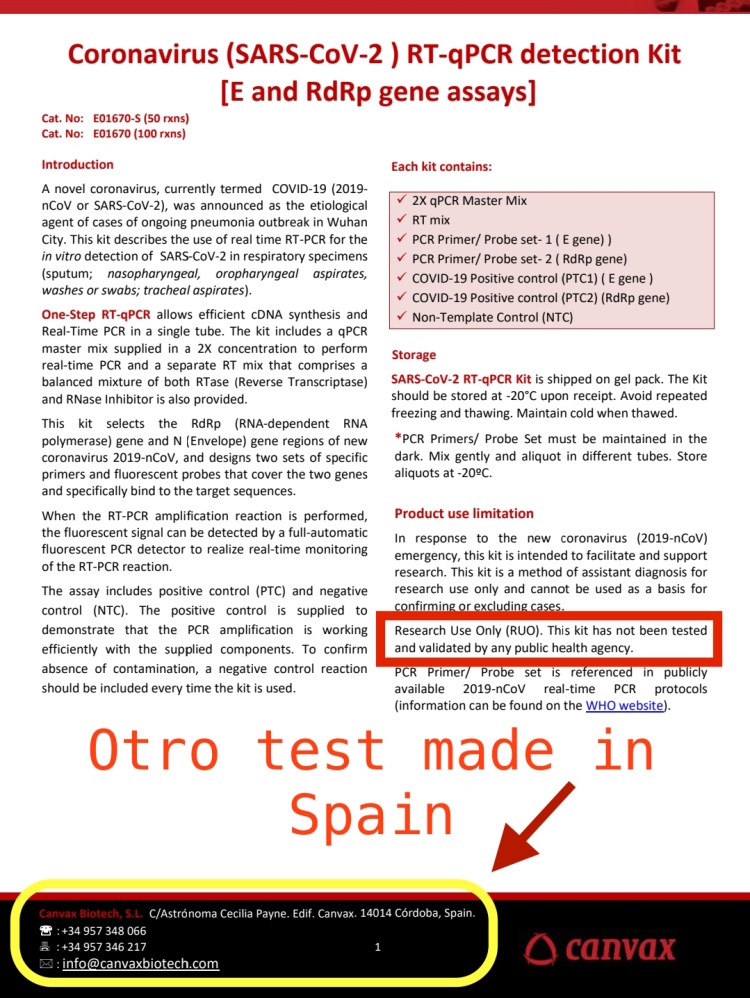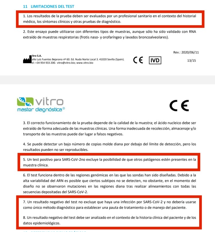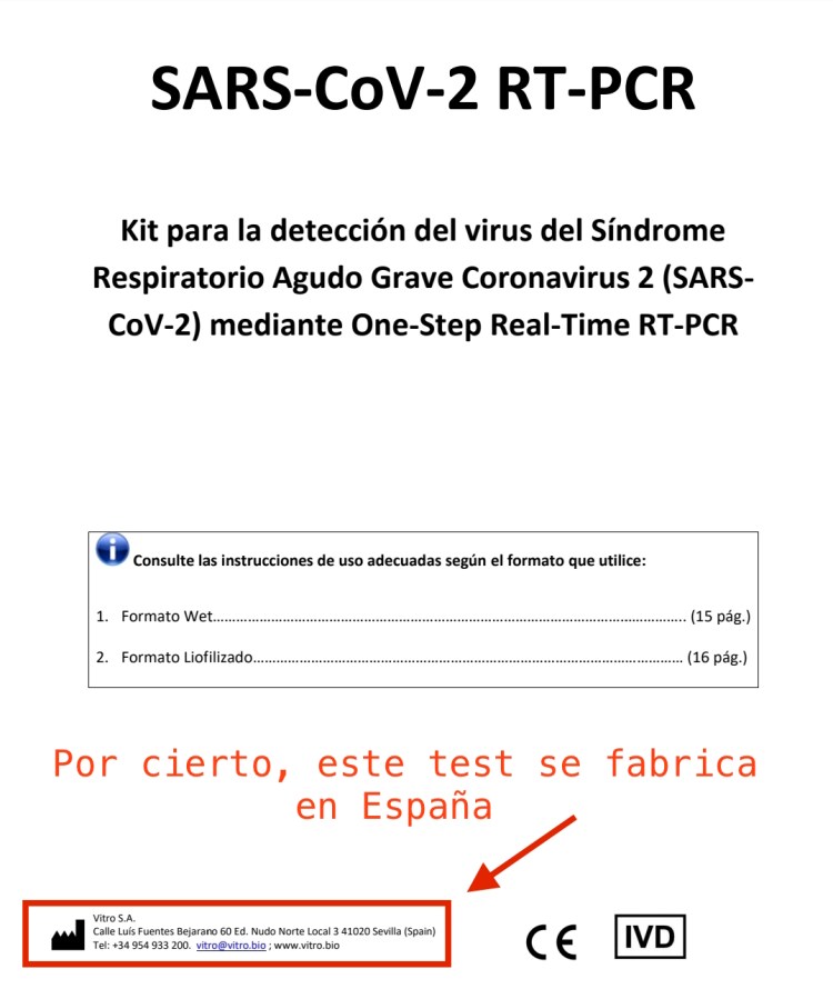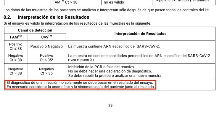 Test PCR donde sus fabricantes indican que no sirven para diagnosticar