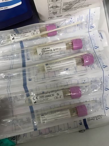 4) Al realizar la prueba, se coge una muestra de la traquea de la persona y se mete en un tubo de ensayo. En esa muestra se encuentran multitud de de organismos con DNA .
