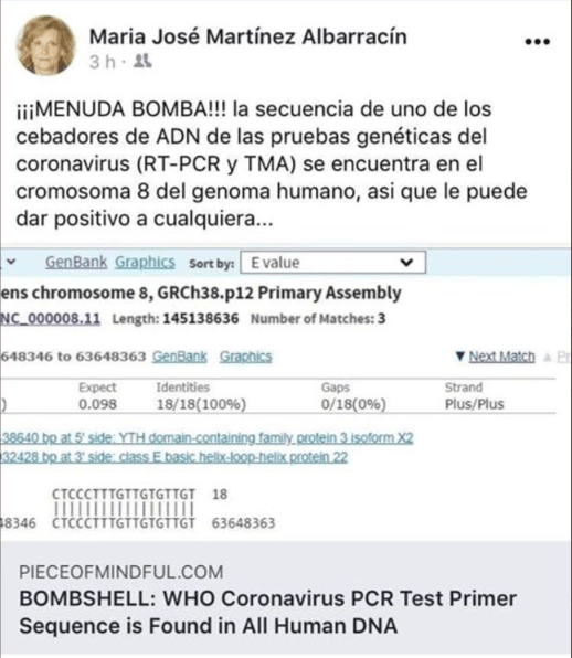 Probad de hacer vosotros la misma búsqueda en BLAST para las otras secuencias en teoría específicas del 2019-Covid y os daréis cuenta que aparecen todas en el genoma del Homo Sapiens con porcentajes de coincidencia del 70 al 90%.