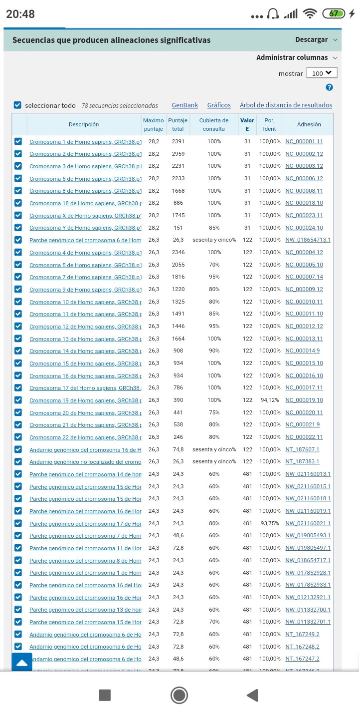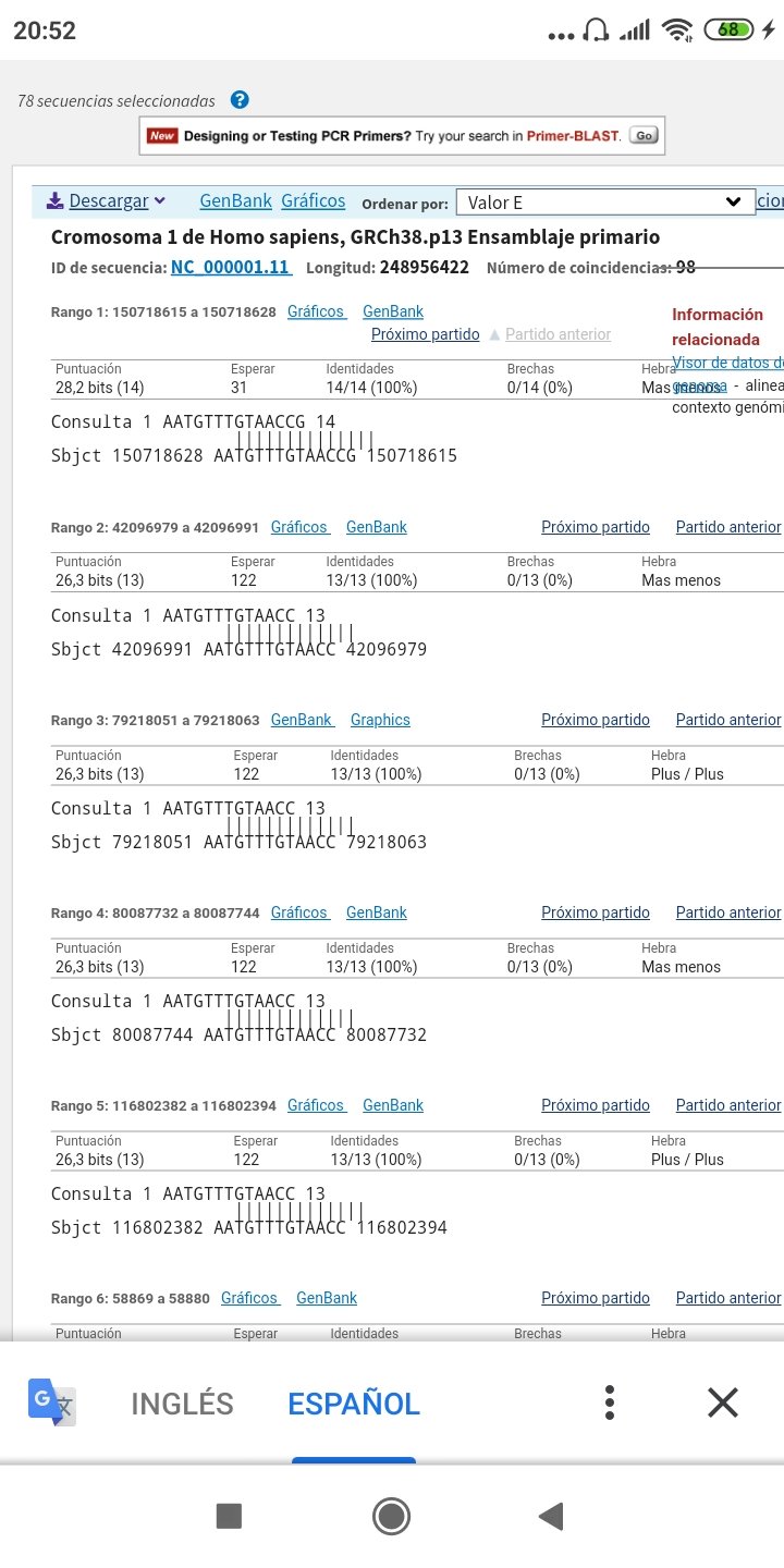 Aquí nos muestra 9 secuencias con entre 15 y 20 nucleótidos o letras genicas.