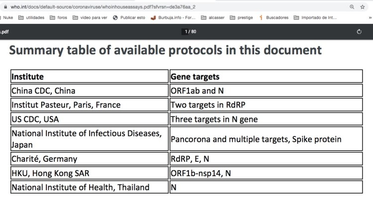 Éstas curiosamente cambian dependiendo del país, o sea cada país impone sus secuencias oficiales para detectar 2019-Covid.