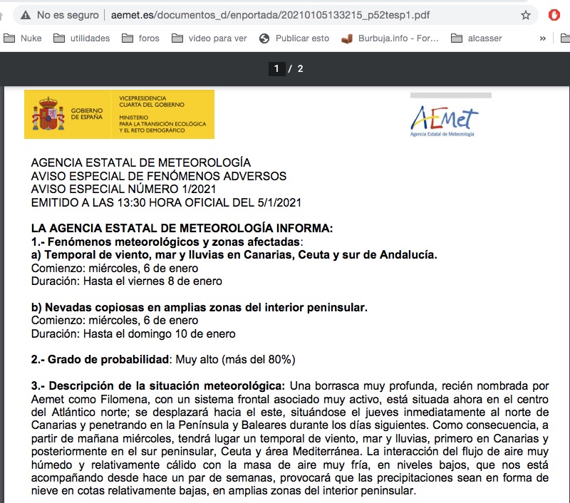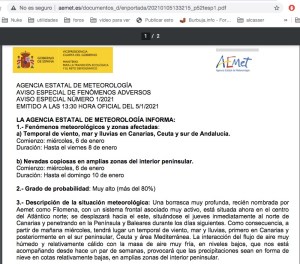 Aemet aviso Filomena