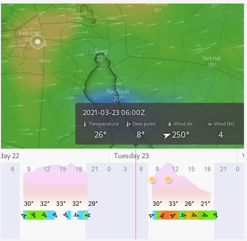 Solo hay otro canal estrecho en el canal de Suez que está dividido en dos canales independientes en gran parte del trazado y precisamente «el viento» fue a encallar el buque ahi.