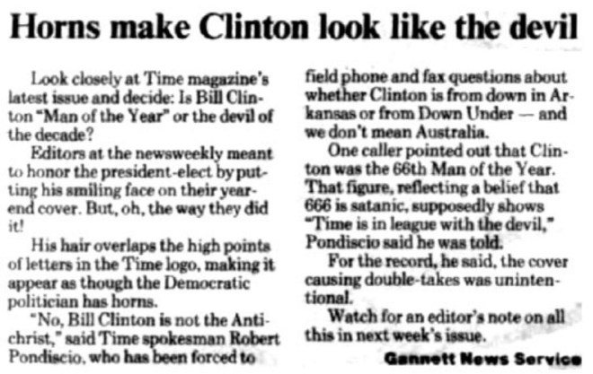Lo que sí es cierto es que el señor Bill Clinton fue elegido hombre del año por la revista Time pasando a ocupar el puesto 66 en dicha lista. Igual que fue elegido padre del año en 2013 al cumplir los 66 años.