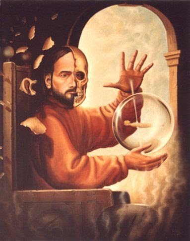 Introducir imágenes a fuego lento en la memoria colectiva de los hombres para que vayan procesando su futuro. Sustitución de los hombres por máquinas antropomorfas y de corte andrógino. Primero como un suceso escabroso, monstruoso y de película de terror o fantástica, pero a la larga y gracias a todos estos «artistas», pequeños magos negros al servicio del poder, que desde aquellos filántropos y mecenas del Renacimiento vienen mostrando el arte como medio de introducción masivo en la memoria de todos nosotros. ¿Creen qué es una exageración? Y no sólo los artistas. Recuerdan los filósofos a lo largo de la historia. Miremos pues a la nueva filosofía científica.