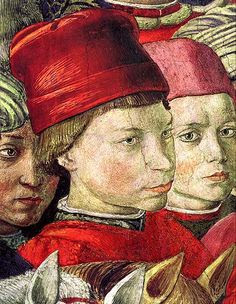 Sí, todo apunta a ritual de iniciación de «El Elegido«, que comienza por donde despunta el Sol, al salir de Jerusalén y moviéndose el relato-conjuro pintado como las agujas del reloj. Prosigue la procesión-cabalgata en la pared Sur, con el mago Baltasar, en la figura del Emperador bizantino Juan VIII Paleólogo, con mirada perdida y visionaria hacia el fatal destino de su ya pequeño Imperio. Portador del oro, símbolo real, y representación de la madurez y vigor del hombre, ya iniciado. Con el verde como color dominante, de la regeneración y la armonización de los opuestos. En la pared Oeste, la del crepúsculo y fin de ciclo, tenemos al rey sabio anciano, Melchor, de la que su rostro es atribuido normalmente al Patriarca de Constantinopla, José II, líder de la Iglesia cristiana ortodoxa, que también viene en mula, como el mayor de la familia anfitriona. Su comitiva lleva consigo el incienso, aparente ofrenda y útil en los rituales iniciáticos. Los colores rojizos dominan en esta pared, que denota tonalidades propias del ocaso del día, alegoría de final de proceso. Una casualidad histórico-curiosa, ¿se acuerdan de quién hablamos en una peregrinación a Montserrat con una mula?