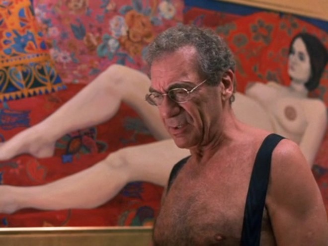 En esta escena podemos ver una de las pinturas de la mujer del director, Christiane Kubrick. El nombre del óleo, Paula seis meses en rojo ya nos indica que Paula esta embarazada pero la propia imagen de Paula ya no deja lugar a dudas. Una cara triste, pero áspera, adusta nos está contando que el futuro no es muy halagüeño para Paula y su bebé. Posiblemente terminará siendo asesinado en un ritual de sexo y sangre como los que Fiona Barnett ha denunciado.