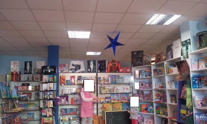 Como habréis observado, no se trata solo de que en la parte infantil de la papelería luciese como invitado privilegiado un ejemplar del libro CUERNOS de Joe Hill, un libro de terror para adultos, es que directamente estaba grotescamente presidiendo esa posición en una especie de atril con cuernecitos.