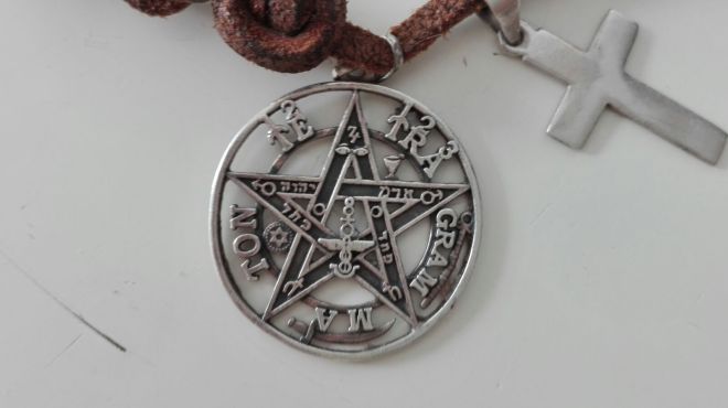 0567g Podemos observar la cruz Tau en el llamado hexagrama de Salomón junto con el tetragramatron…muchas personas creen que estos símbolos son beneficiosos y se los cuelgan al cuello. Yo conocí a uno de ellos.