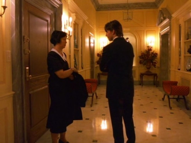 0570b En esta escena Kubrick nos deja una pista de la pertenencia a los illuminati de la familia Nathanson pero la deja velada y solo nos la mostrará cuando Bill empiece a salir del laberinto. Y el mago director nos vela la pista con la luz. Nosotros la desvelaremos en próximos capítulos.