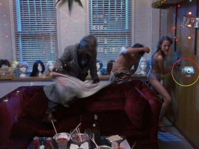 0865 En el rifirrafe por una décima de segundo se ve en la pared izquierda un monitor que muestra la escena.
