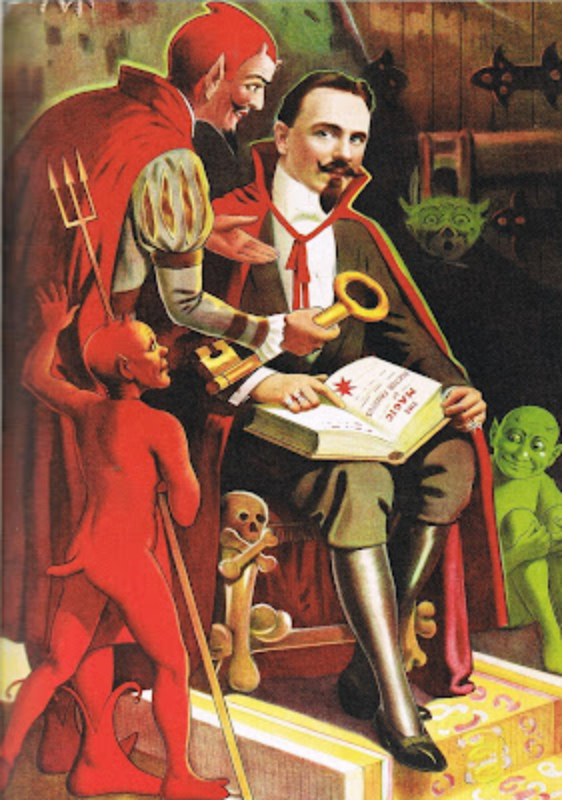 Todos los magos famosos de aquella época dorada de la magia se presentaban a su público como unos verdaderos conocedores de todos los más grandes misterios de la vida y de la muerte. Las ilustraciones de la época muestran cómo los diablos eran los encargados de «chivatar» al mago los secretos y misterios de la vida. Se trataba de un conocimiento oculto y cerrado que solo podía ser conocido si el mago recibía la llave desde «el otro lado». Una llave muy especial que solamente podía ser entregada por el portador del tridente.