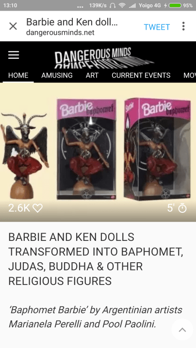 Aunque sabemos que las Barbie y Ken satánicos no son cosa de la propia marca, tampoco conocemos que la marca se haya ofendido o se haya querellado con los artistas argentinos que han creado este y otros muchos engendros de otras religiones y cultos.
