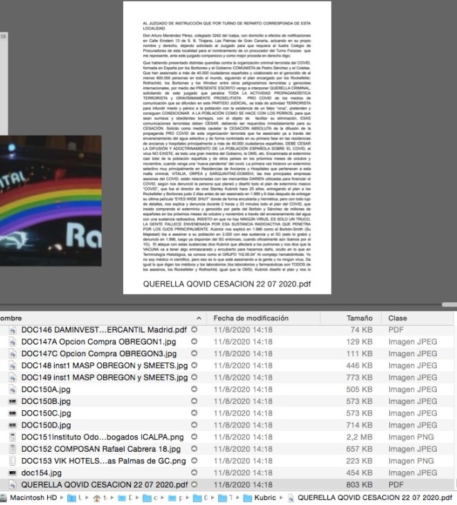 Algunas teorías entre comillas “conspiranoicas” tan rocambolescas como la presentada ante un juzgado de España en el que señalaban que la crisis del coronavirus fue auspiciada por la entrecomillas «terrorista» Organización Mundial de la Salud y que Kubrick lo expuso hace 25 años en esta película y por eso fue asesinado.
