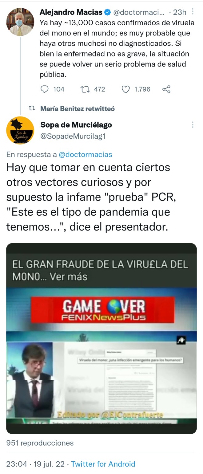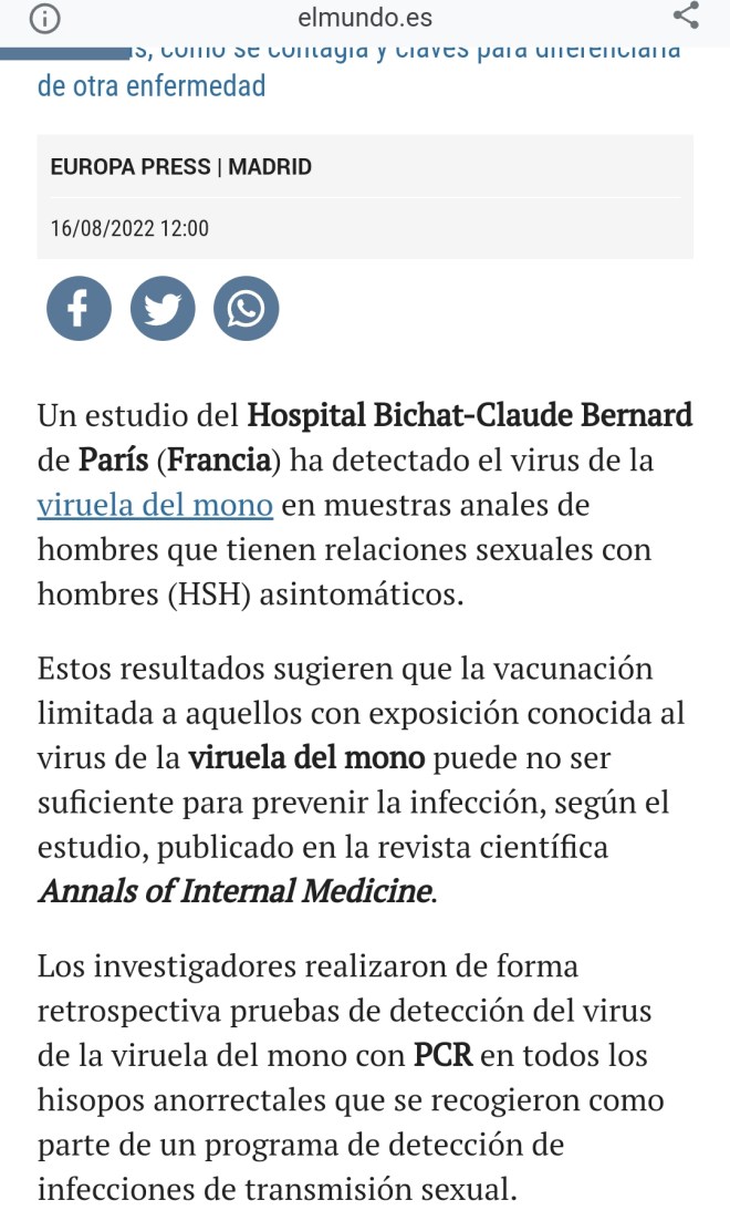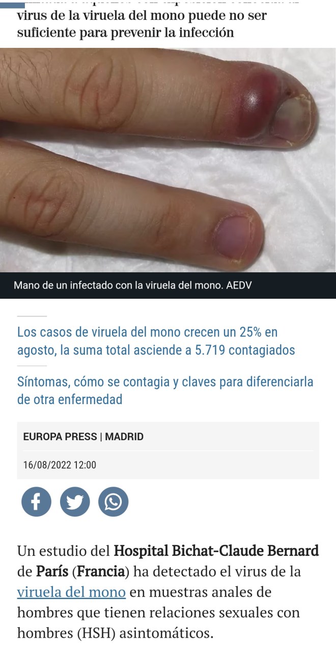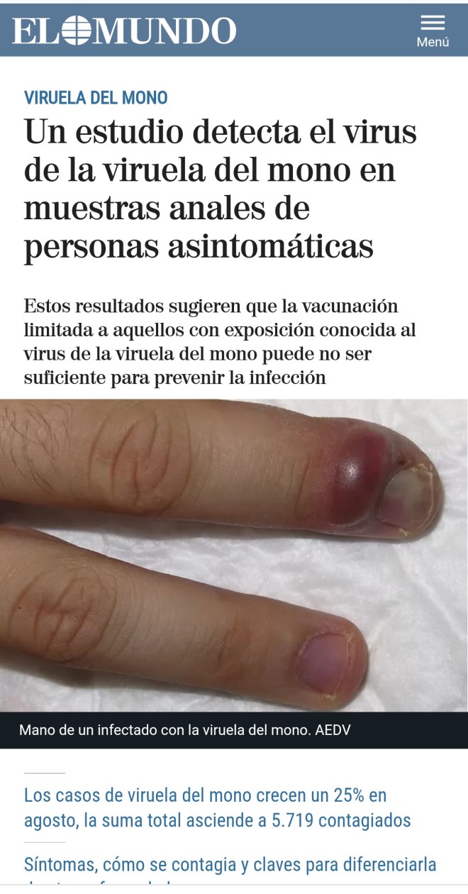 El 16 de agosto nos hablan por primera vez de los asintomáticos del virus del mono. Parece ser que «el arsénico» que supuestamente dispersaron no fue suficiente para iniciar el tema.