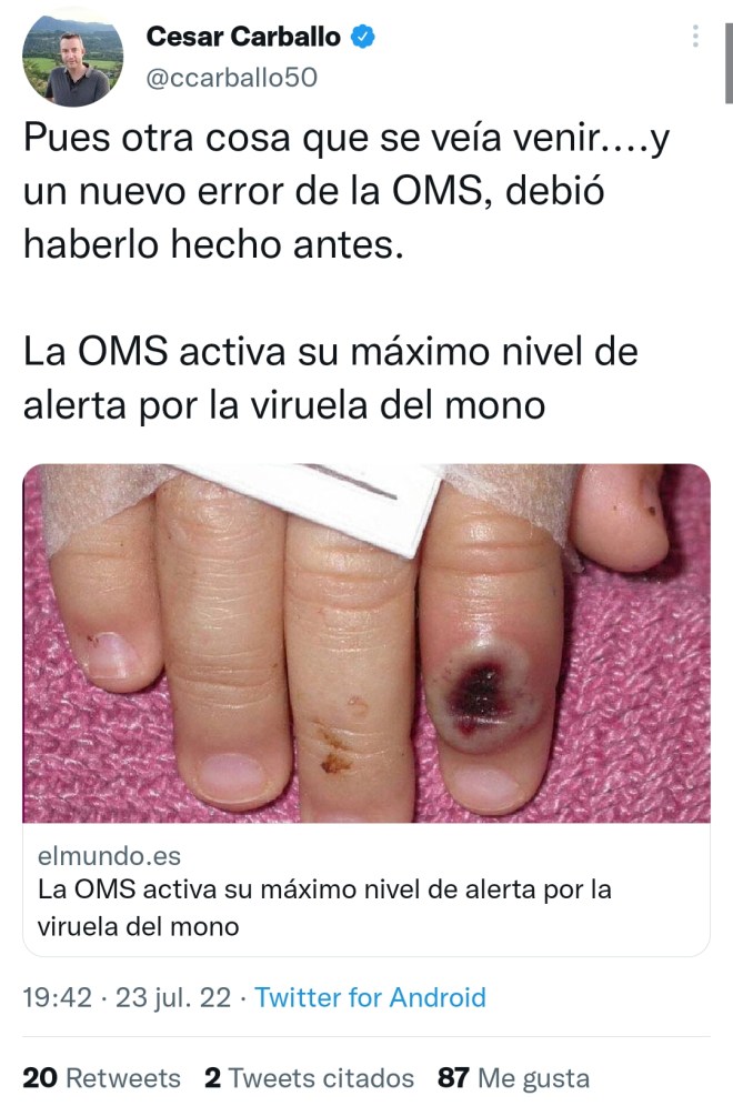 Y los agoreros como Carballo espolean las decisiones de la OMS pidiendo más de lo que sea.