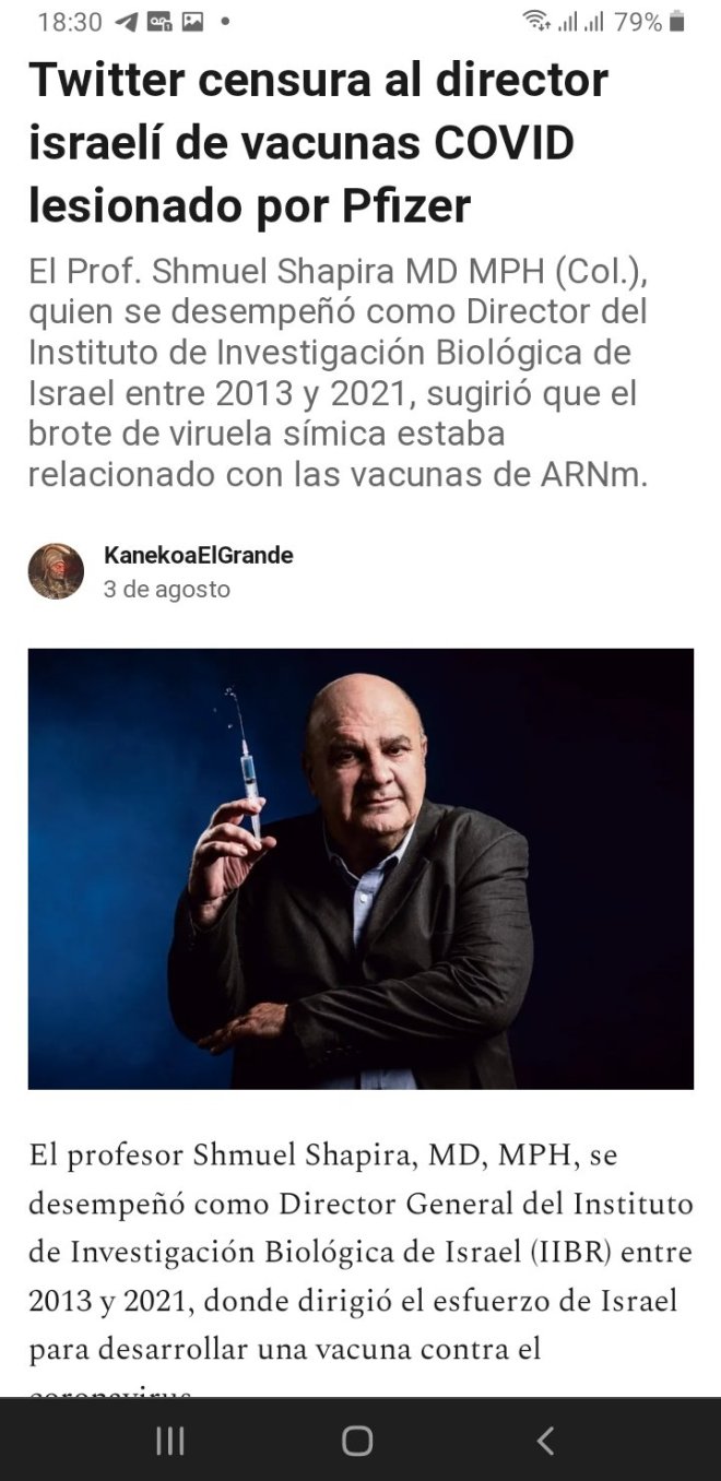 Se censura en las redes y en los medios a un médico que fue director de un instituto de investigación biológica en Israel por aventurarse a decir que el brote de viruela símica estuviese relacionado con la vacunación COVID.
