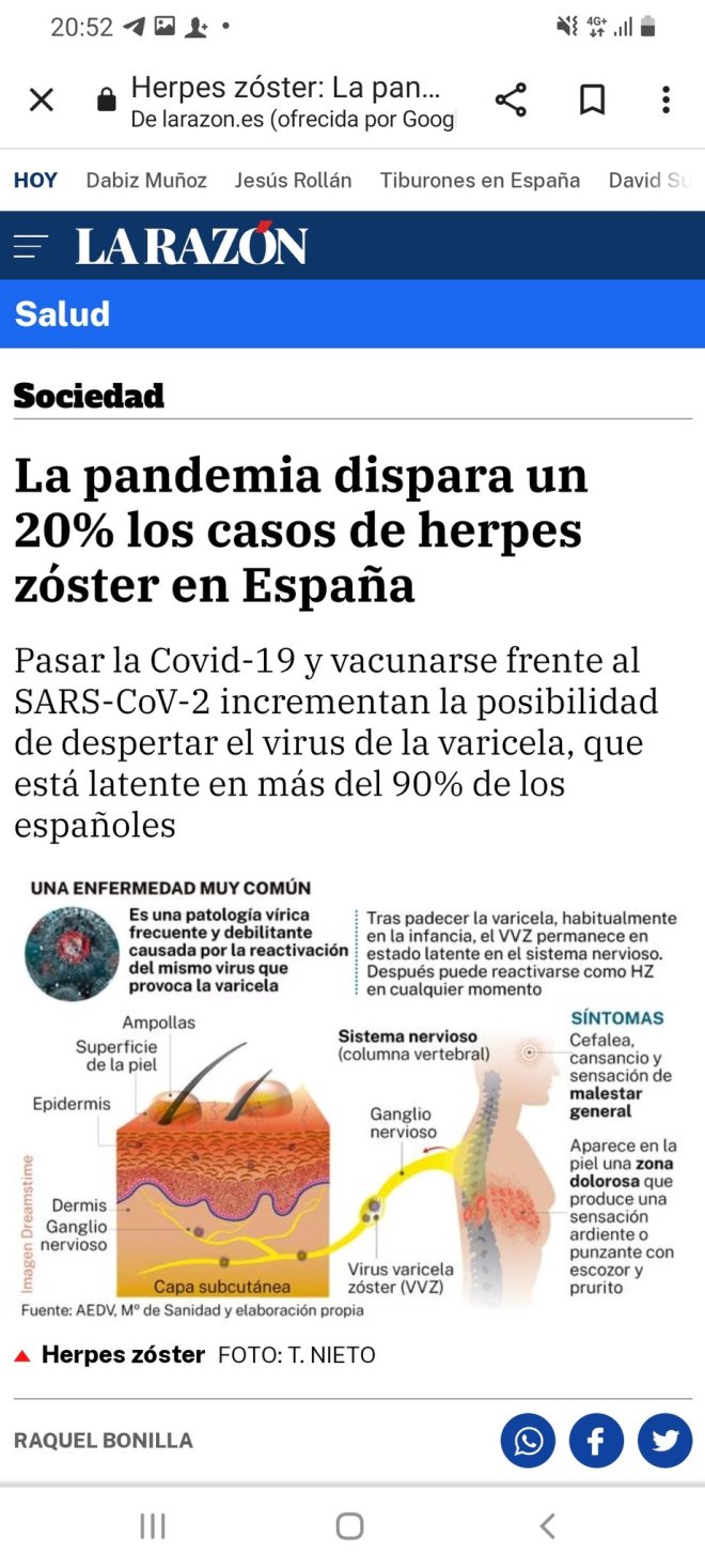 Y se empieza a hablar de un aumento significativo de los Herpes Zoster (la famosa culebrilla) un proceso infeccioso en la piel que provoca unas lesiones que podrían confundirse con las del virus del mono.
