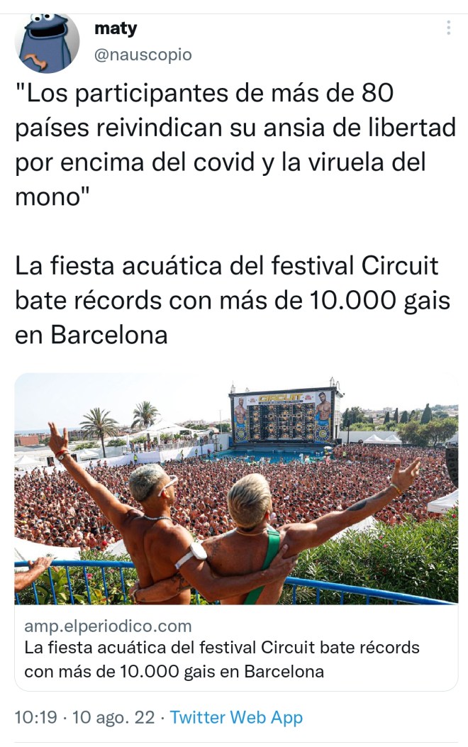 Pero volvamos a lo pasó este verano. Estamos en Agosto y todo tipo de fiestas gays se están produciendo con total normalidad.