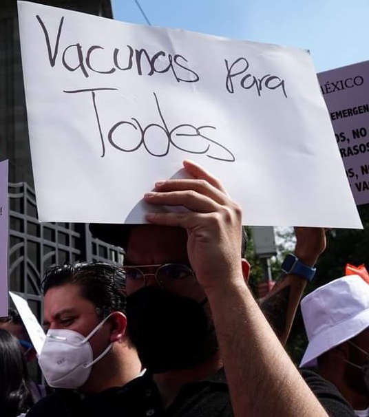 Tenemos también algunas manifestaciones exigiendo la vacunación para este tema. ¡Qué no falte el lenguaje inclusivo y los bozales!