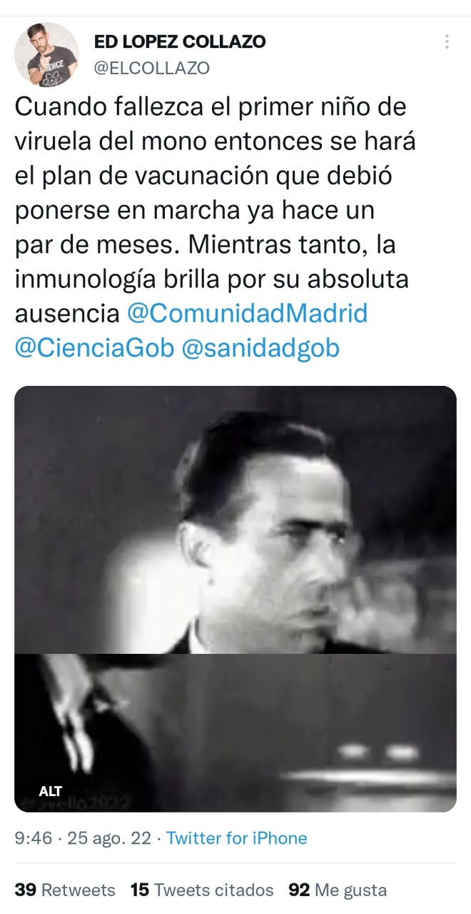 Y como en estos inicios de la #Tragipandemia simiesca se les asignó a los gays el papel del malo de la película no tardaron en aparecer los tertulianos antihomofobia con videos tan ridículos como este.