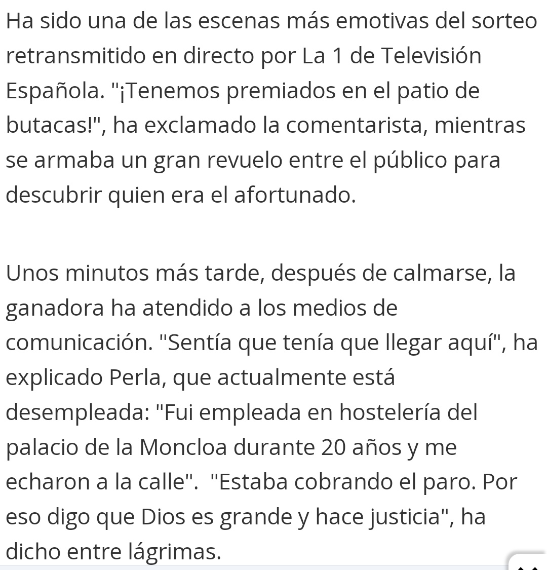Por no hablar de «la perla» del teatro de la Sra peruana con 95 décimos en el bolso y que habiendo recorrido media España estando 3 años en paro se gasta 4000€ en busca del décimo premiado y le toca el gordo en directo…por la TV…¡Cómo debe ser, con dos cojones!