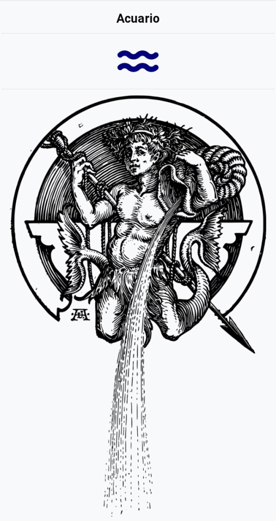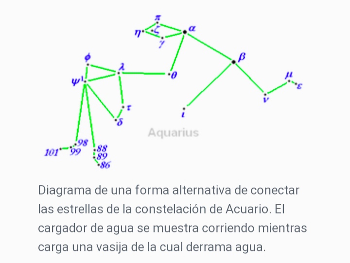 Nota aclaratoria: El que sepa de Astrología reparará en una aparente equivocación que puedo haber tenido al decir que Acuario es un signo de agua ya que es clasificado actualmente como signo de aire pero es una de las constelaciones más antiguas y que apareciera ya en la lista de las 48 constelaciones que fueron catalogadas por el astrónomo griego Ptolomeo en el siglo II después de Cristo.