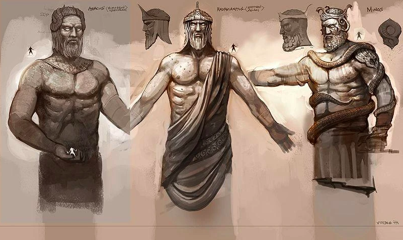 Dédalo (arquitecto y artesano famoso por haber construido el laberinto de Creta) se refiere a ellos como Estatuas de Hefesto (Dios de los metales). Esto implica que tras la muerte de los reyes, ya en el Inframundo, se convirtieron en los jueces del Hades, y sus almas fueron contenidas en las estatuas con el fin de defender la Cadena del Equilibrio.