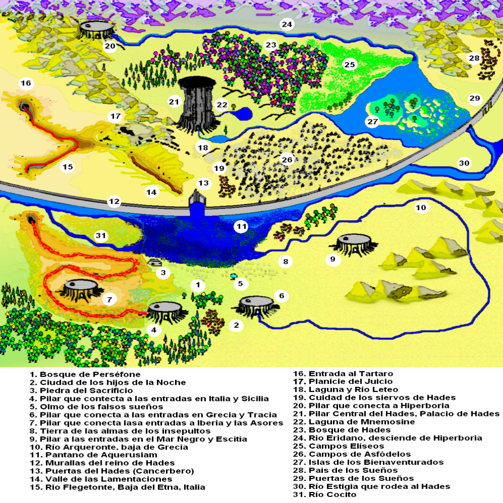 Teniendo localizados los Campos Elíseos tenemos en el otro extremo el Tártaro.