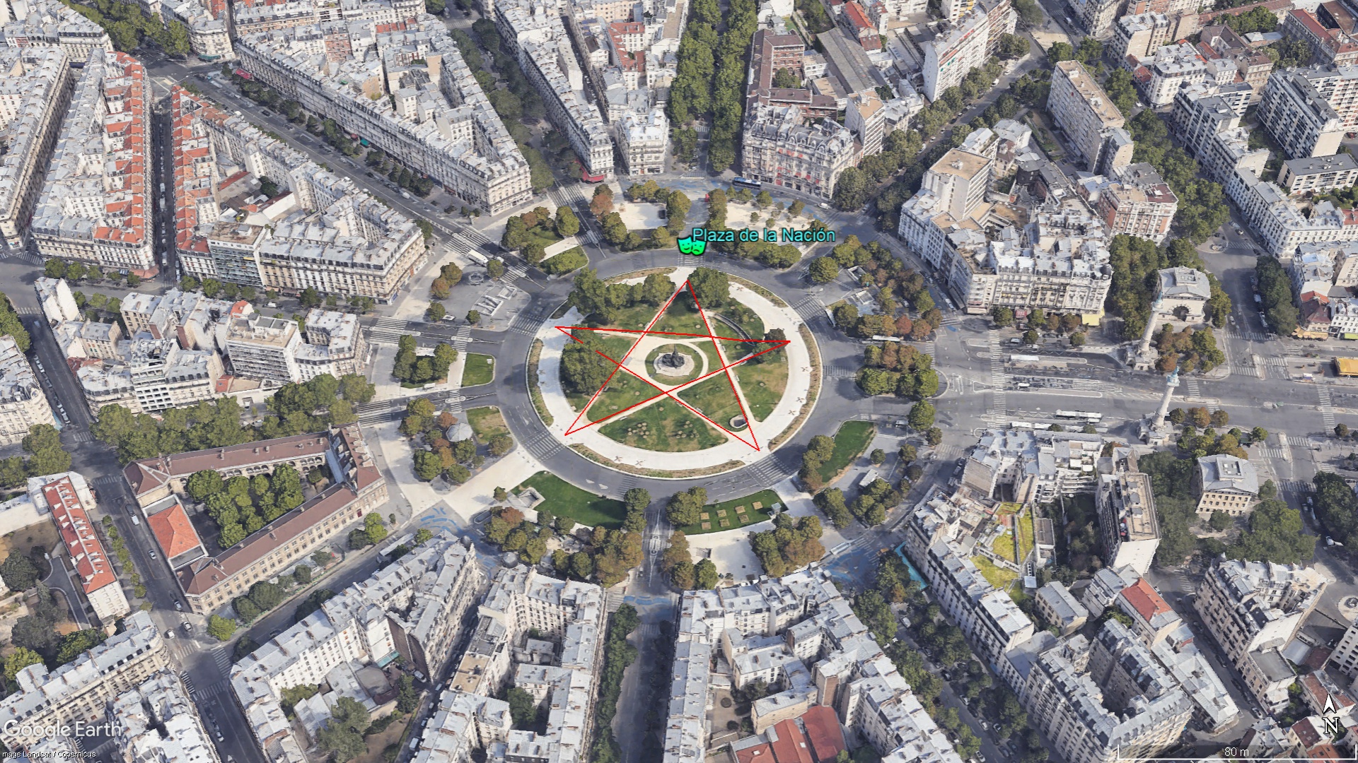 La plaza Charles de Gaulle que es en la que se encuentra el Arco de Triunfo, anteriormente fue la plaza de la Estrella. De ella salían 12 avenidas recordando la rueda zodiacal. París fue fundada por los celtas. Los Campos Elíseos son parte del eje histórico de París.