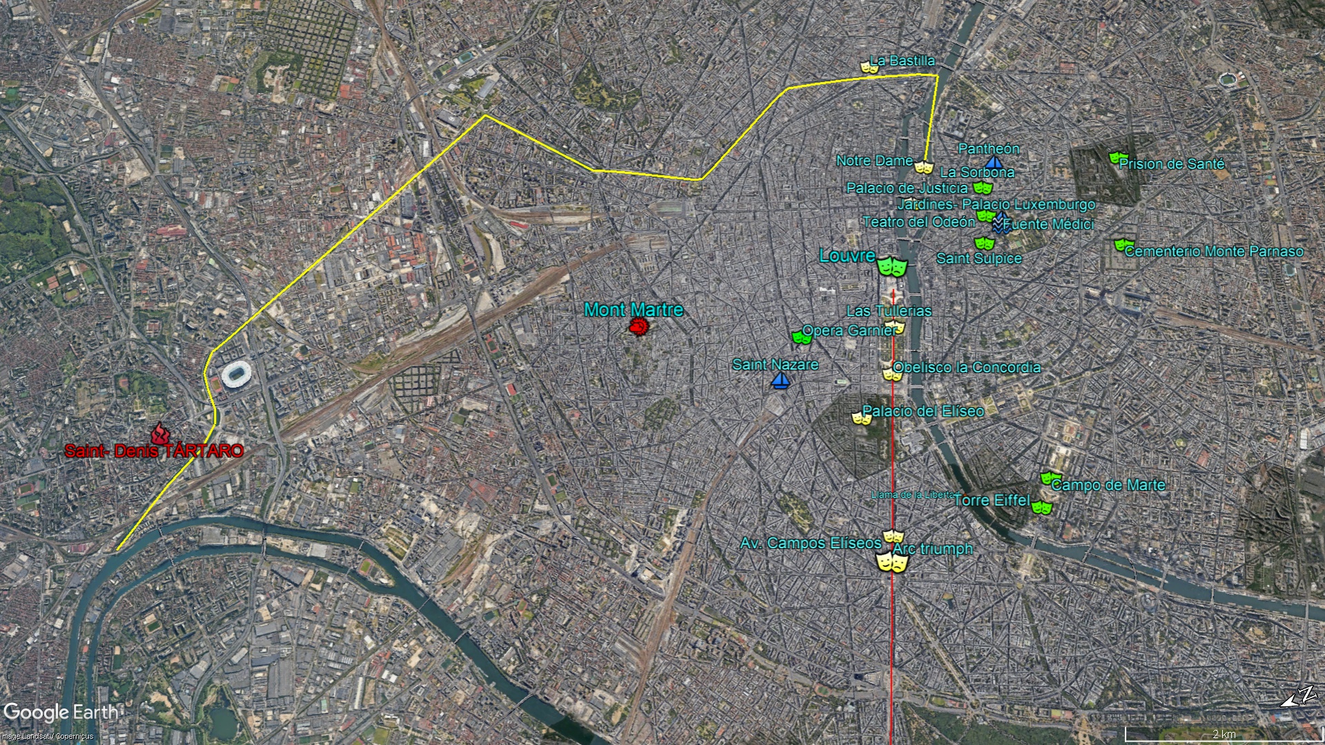 Este correspondería al barrio periférico de Saint Denis y como no, es lo más cercano al infierno. Muchos de sus habitantes tienen estatus de «sin papeles». Se hacen muchas redadas policiales. Recordaréis que los terroristas yihadistas del atentado contra Charlie Hebdo, que declararon pertenecer a Al Qaeda, vivían en este barrio. Está muy lejos del estilo de vida que caracteriza a los distritos centrales. Se le describe como multicultural, multiétnico con una población africana, argelina, india, china, turca y de muchos otros lados. La línea de autobús que conecta al barrio con París es la 13 (muerte) En fin, creo queda cristalino.
