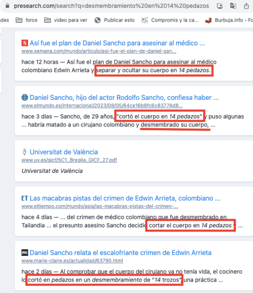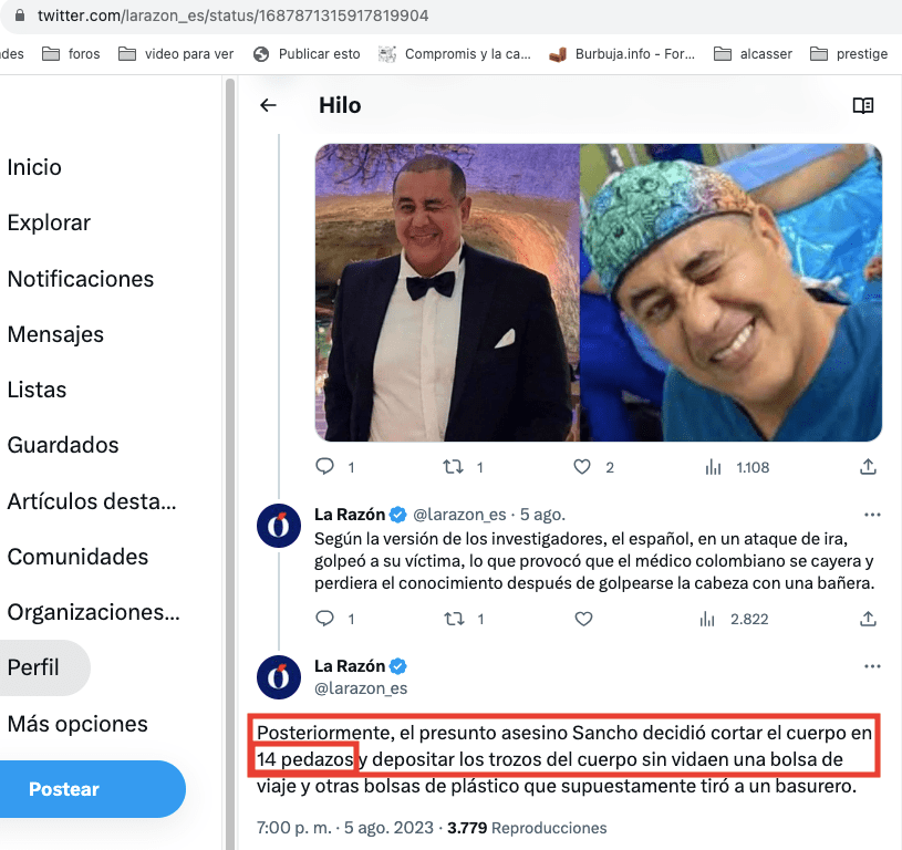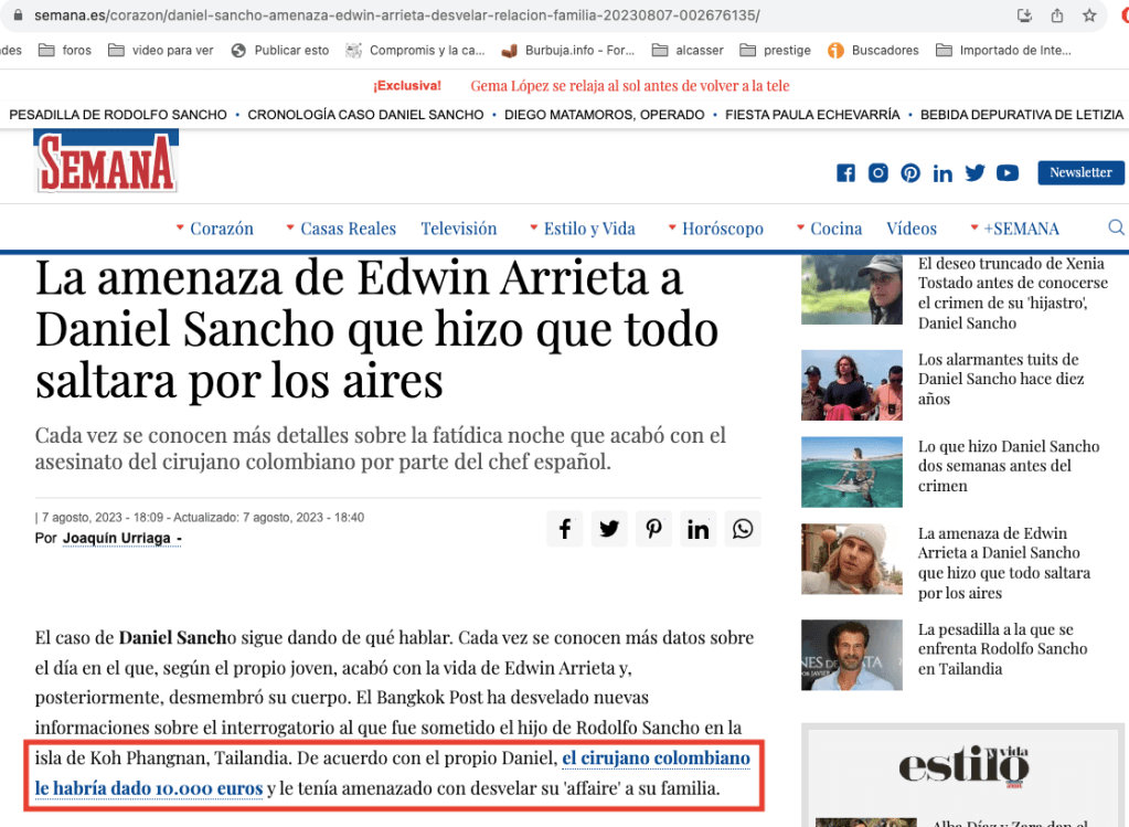 Curiosamente en el titulo han incluido el numero 14 que como veremos más adelante es muy importante en una de las representaciones en vivo que «estamos vivificando» en este momento y que no es otra que el supuesto asesinato de un cirujano colombiano en Tailandia a manos del hijo y nieto de una de estas sagas de actores, los Sancho Gracia.