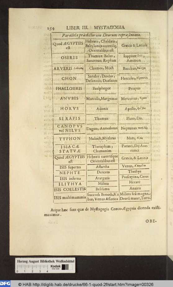 En esta tabla de correspondencia entre dioses egipcios, hebreos, babilonios y greco romanos incluida en un libro que los jesuitas regalaron al Papa en 1650 podemos ver que Osiris corresponde con ese nombre.