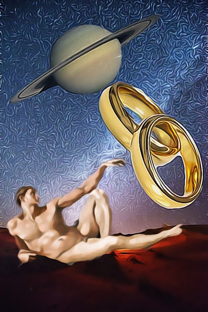 Saturno, como planeta-mito, sería el equivalente a la Edad de Oro u otras edades primigenias con el personaje de Adán, como representante del primer hombre fruto de la creación de Dios (o dioses).