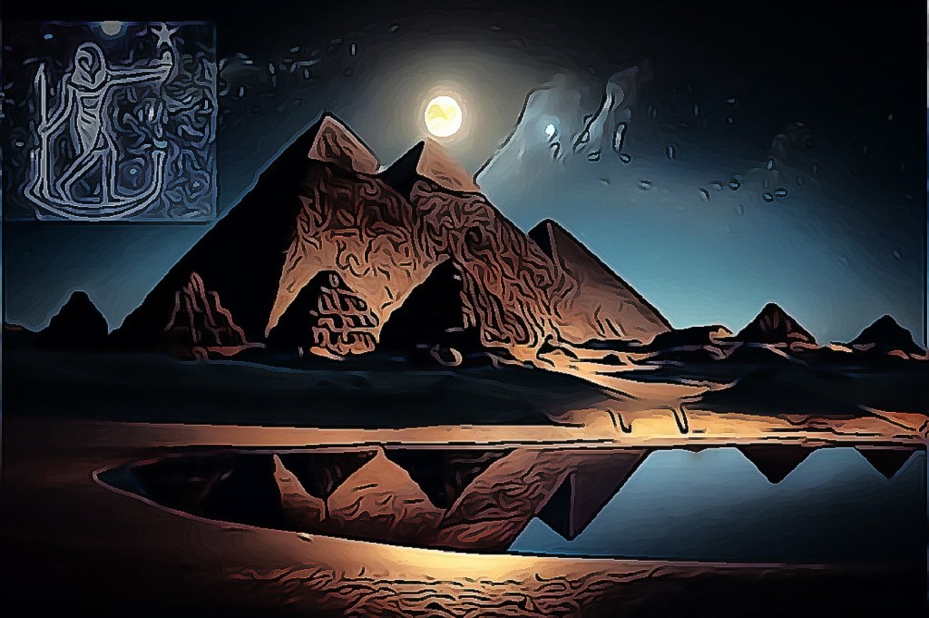 Ya en su versión en la religión egipcia, Thot, como lo conocían los griegos, o Dyehuty, su nombre original allí, siempre relacionado con la sabiduría y las artes, fue en origen un dios lunar, y como tal, vinculado a las fases de la Luna, que son una de las causas directas en la división en periodos temporales y su regulación en las costumbres de la civilización ayudada por la aparición de la escritura. Y son esos escribas tutelados por esta divinidad, los que plasman a Thot, como arquitecto conocedor de trazos perfectos sobre todo lo conocido y poseedor de la sabiduría en lo referente a las habilidades, las diferentes técnicas y la salvaguarda de la ley moral.
