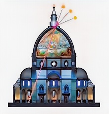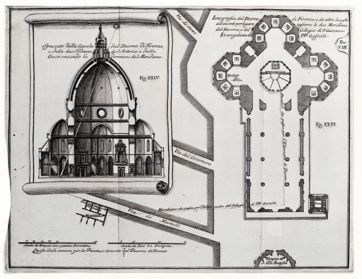 «Paolo del Pozzo Toscanelli (1397-1482), reputado matemático, astrónomo y, como no, cosmógrafo florentino. Sus conocimientos en matemáticas fueron aplicados para la construcción de la cúpula de la catedral Santa Maria del Fiore (Florencia). Toscanelli colocó el más alto gnomon conocido en la época en esa enorme cúpula. Un objeto de 4 cm en la ventana sur de la cúpula de Brunelleschi a 90 metros del suelo. Calculando de manera muy precisa para ser utilizada como instrumento de medición del año solar. Los cálculos llevados por el viejo Toscanelli con su “agujero gnómico” permitieron corregir las Tablas Alfonsinas y Toledanas, que fueron las medidas oficiales astronómicas hasta ese momento. La “trampa solar” del gnomon ‘inverso’, atrapa el disco solar grabado en el suelo de la catedral durante el solsticio de verano, al mediodía, como el cálculo de Eratóstenes.»