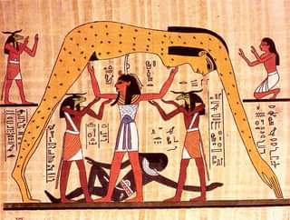 «El primer día Nut dio a luz a Osiris, que sería faraón después de Ra; el segundo día, a Harmachis (Horus, el Viejo), que está inmortalizado en la Esfinge; el tercer día, a Seth, que más tarde mataría a Osiris y se convertiría en faraón; el cuarto día, a Isis, que sería la esposa de Osiris; y el quinto día, a Neftis, que sería la esposa de Seth.»
