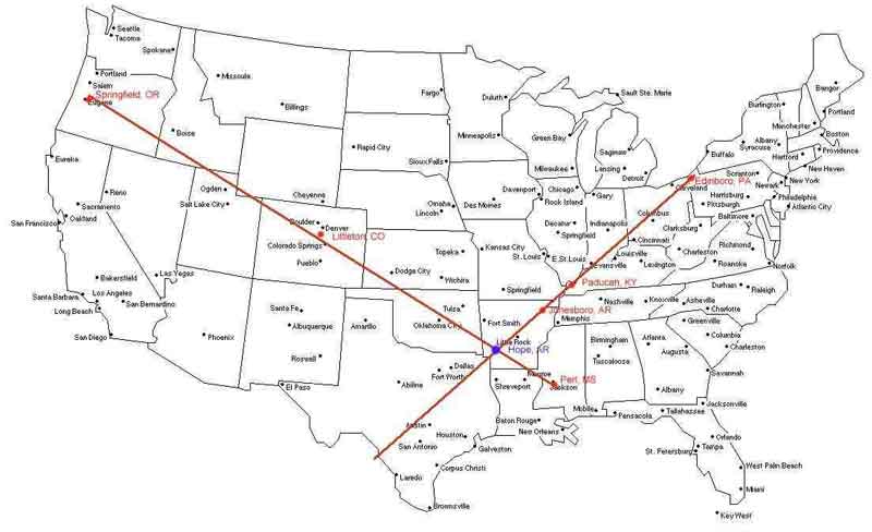 Recordé que la zona por donde el eclipse se podrá ver este 8 de abril coincide con una de las líneas principales de los mayores tiroteos en centros educativos en USA.