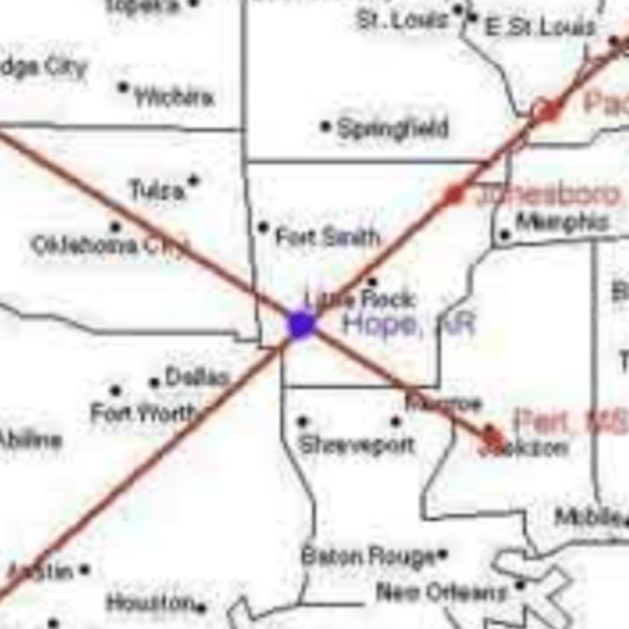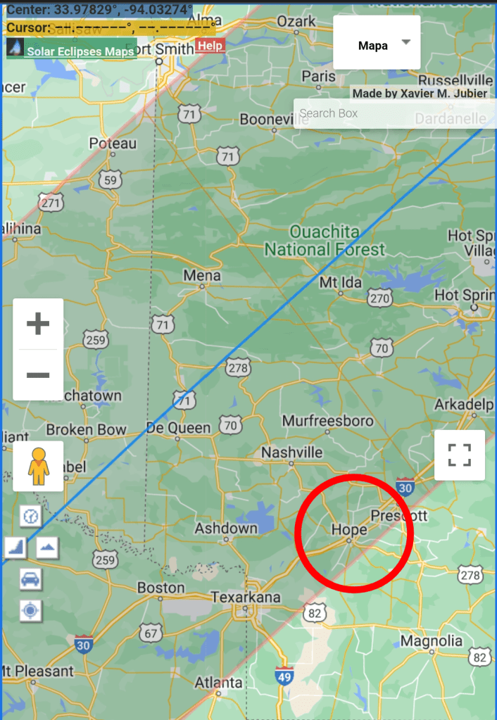 ¿Y que pueblo de USA tenemos en medio de esa X que forman el eclipse de 2017 y este de 2024?