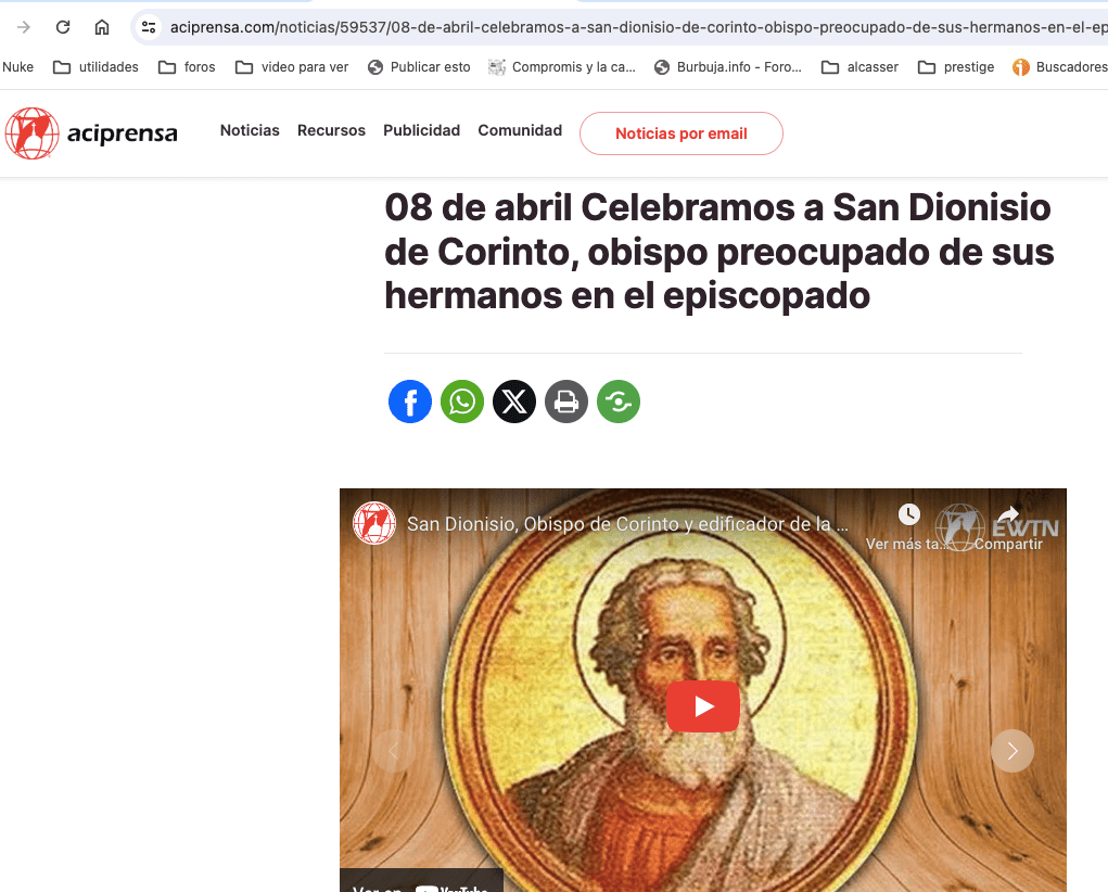 Y es que cada 8 de abril se recuerda a San Dionisio de Corinto, obispo de los primeros siglos de la Iglesia que no debe ser confundido con San Dionisio Areopagita (el de la V de victoria), primer obispo de Atenas ni tampoco con el Dioniso griego para celebrar con un buen trago de vino la llegada de la primavera. Gracias puntal por esta tremenda aportación.