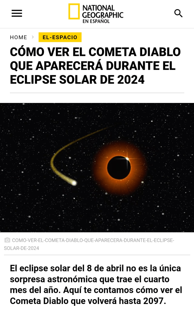 Como si de una fecundación se tratase incluso han inoculado en las mentes de los pobres incautos que el cometa Diablo coincidirá con el eclipse del 8 de abril…y no, solo se podrá ver desde grandes telescopios. Habrá que esperar a junio para verlo a simple vista…